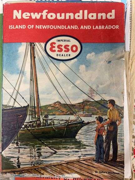 Vintage Newfoundland travel brochures. Hand made stitch art. Leather clothes with bone clove stretcher. And other vintage books.